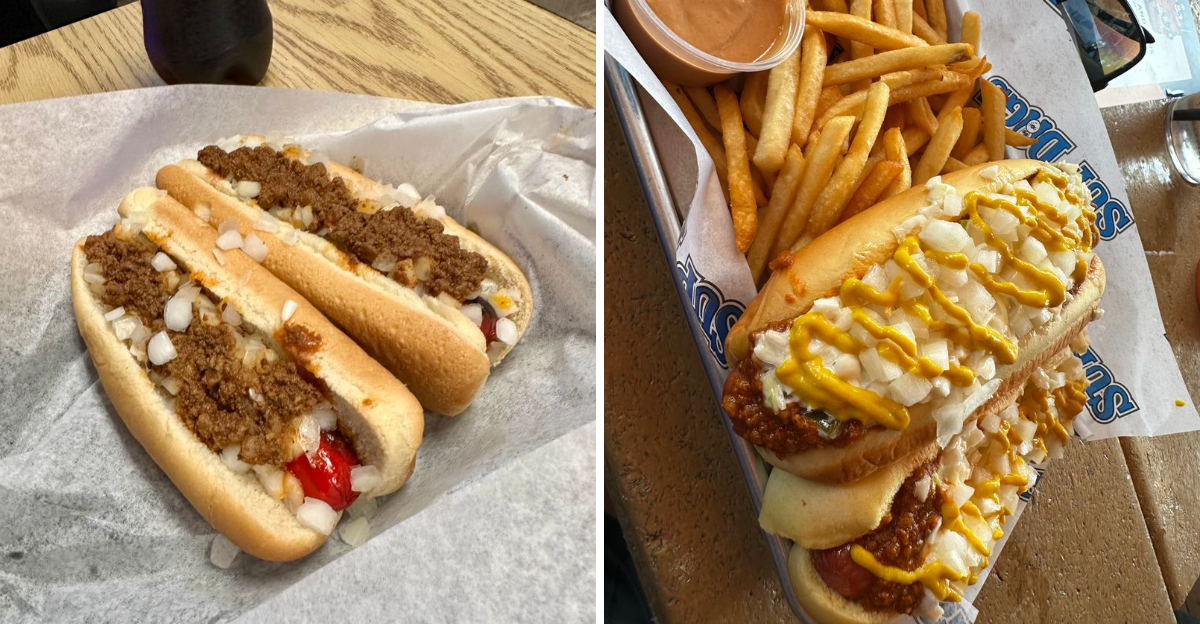 Locals swear by the “all the way” option, which loads your dog with chili, slaw, onions, and mustard in perfect harmony. It’s messy, it’s delicious, and it’s absolutely worth the napkin count.