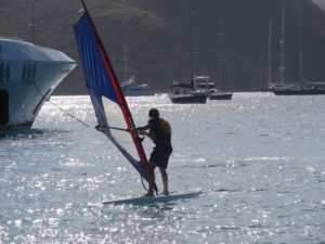 Dan tries wind surfing at Bitter End Yacht Club on Virgin Gorda
