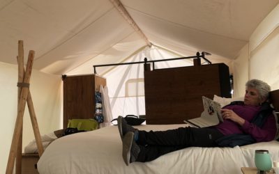 This is camping Under Canvas style, modeled after the traditional safari experience and especially welcome this Pandemic summer when everyone is anxious to enjoy the outdoors but may not want the work of camping, sleeping on the ground or sharing communal bathrooms.