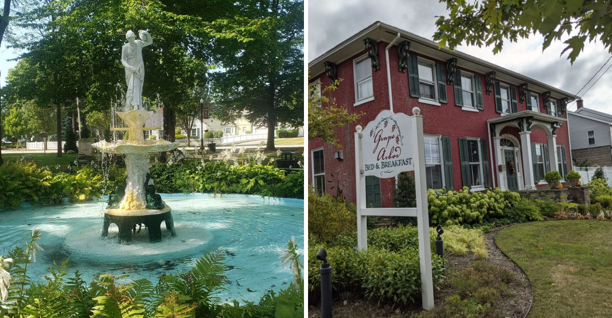 Visitors arriving along Route 5 find themselves in a community of roughly four thousand residents, where tree-lined streets give way to open farmland and the lake appears suddenly beyond the vineyards. The town’s compact downtown area retains its original grid, with brick storefronts and wide sidewalks that speak to an earlier era of American commerce.