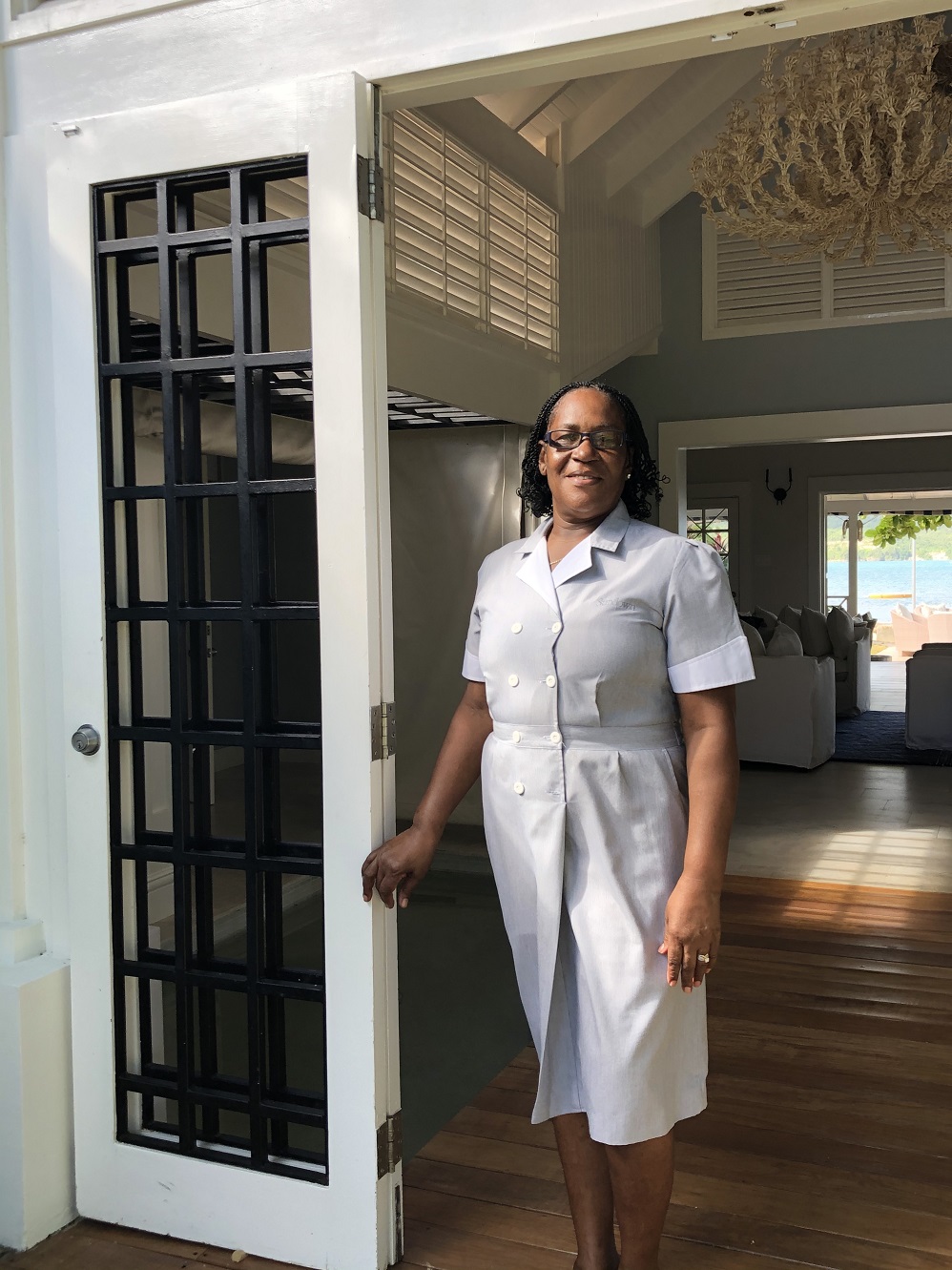 Does she prefer working here to a hotel? Absolutely, she says,  because she can interact with the guests, sharing Jamaican culture.