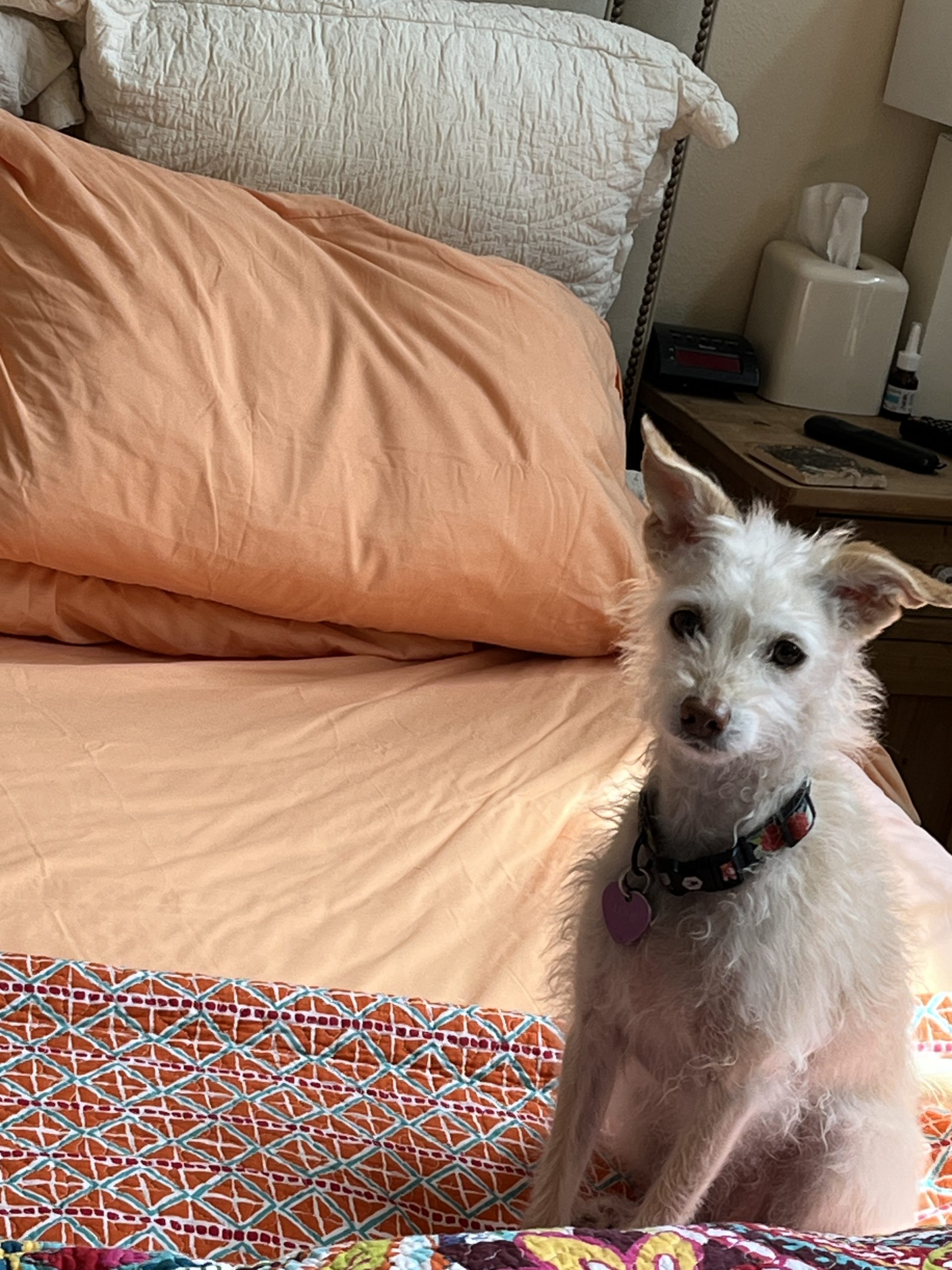 PS: the company’s website features pets who love to cuddle up in the sheets with their owners. Our seven-year-old rescue pooch (Loni Anderson, yes named after the WKRP in Cincinnati starlet) loves doing just that!