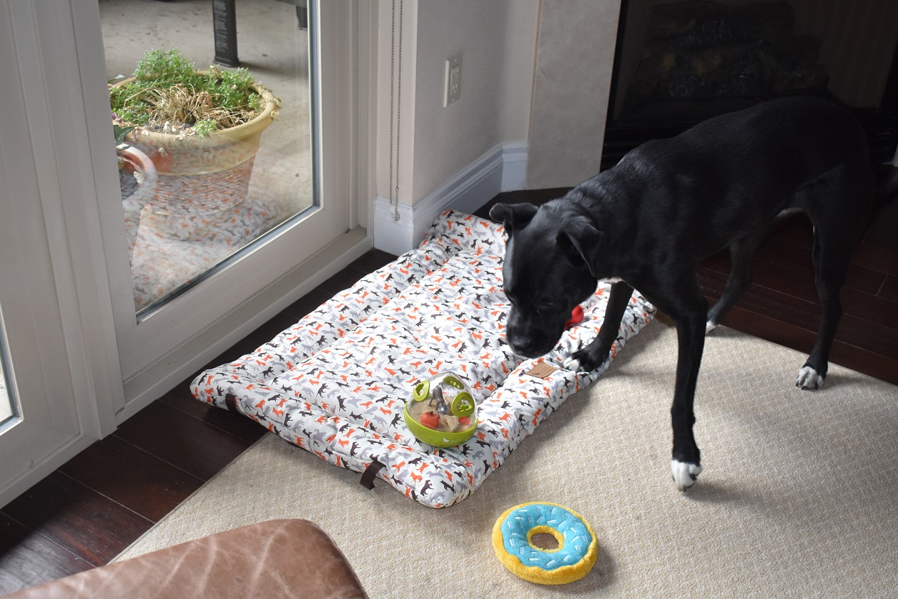 Our dog Trooper has become quite the mountain pooch since we moved from Connecticut to Denver a few months ago. When we take her up in the Rockies, she needs a durable but comfortable bed to sleep on. The Outdoor Chill Pad ($45.00) from P.L.A.Y fits the bill. It rolls up into a tight and easy to store roll. It spreads out in the back seat, or the grass, or the dog-friendly mountain rental. Trooper loves it, along with her new WobbleBall ($18.90) that keeps her entertained trying to find the hidden treat!
