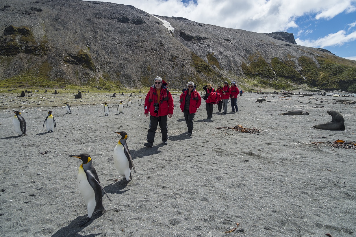 It’s Christmas morning on Salisbury Plain, located on the north coast of South Georgia Island and the penguins were in front of us on the beach, behind us and all the way up a grassy hill.
