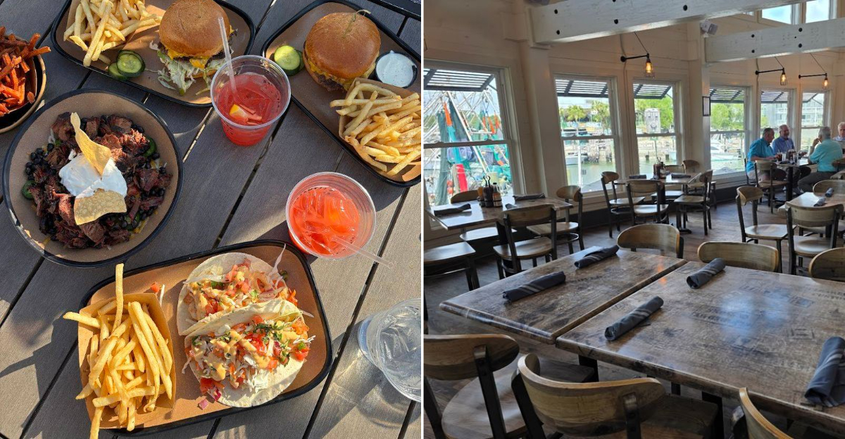 You can sit right along the railing and watch boats pass by while dolphins occasionally make an appearance in the creek. The outdoor deck captures the easy, breezy energy that South Carolina waterfront dining is known for.