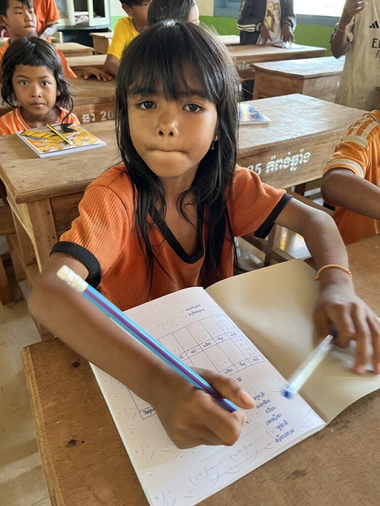 Cambodians are very friendly, even if we don’t speak a word of the same language. Poverty is apparent everywhere. When we visited the school, a group of about 16 kids ranging from 5-10 came to greet us even though they were on vacation. They hugged us, sang songs, and thanked us for the candy, the pencils, and notebooks we brought them. The school was bare bones with wooden benches and desks. There is no AC.