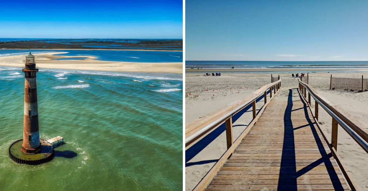 Famous for its lighthouse standing hundreds of feet offshore in the water, Morris Island offers a beach experience tinged with melancholy beauty.