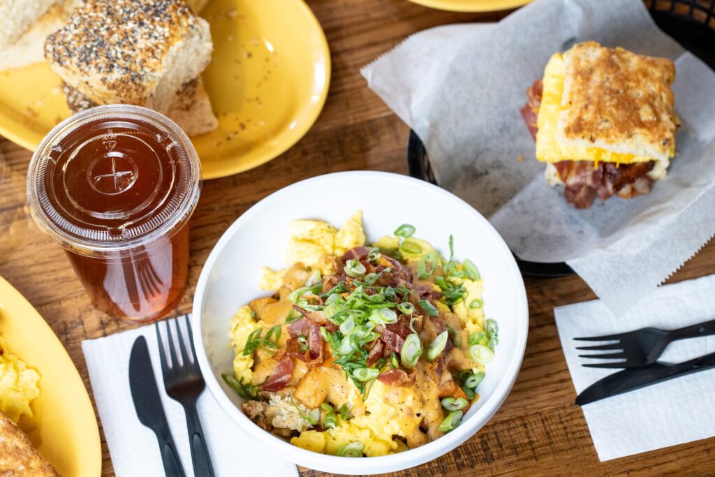The house also offers a sweet buttermilk biscuit variation and an everything biscuit option, giving guests a little flexibility depending on their mood or appetite.