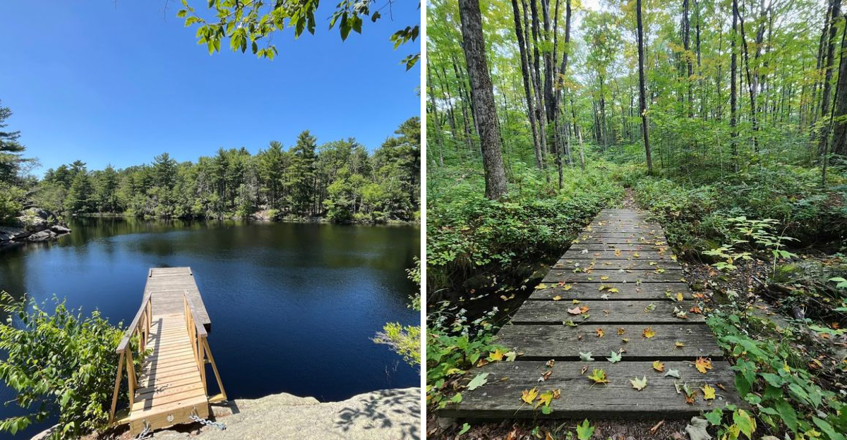 The park spans over 3,500 acres and contains more than 35 miles of trails that pass through forests, past ponds, and alongside the Aaron River Reservoir, giving visitors a serious amount of terrain to explore.