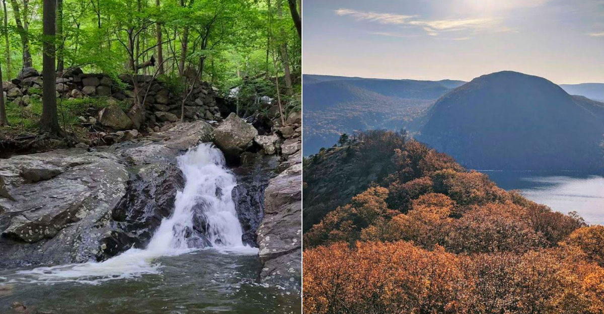 Water features along hiking trails have a way of stopping people completely, and the waterfalls accessible within the Breakneck Ridge area are no exception to that rule. Seasonal cascades appear throughout the Hudson Highlands terrain, fed by snowmelt and spring rains that send water tumbling over mossy ledges and into shallow pools below.