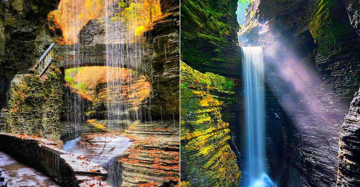 New York holds landscapes that feel carefully composed without ever feeling staged. At Watkins Glen State Park, New York visitors step into a gorge where waterfalls, stone bridges, and winding pathways create scenes that seem quietly arranged by time and water. The air carries a cool mist, footsteps echo gently along the trail, and every turn reveals another view that encourages you to pause.