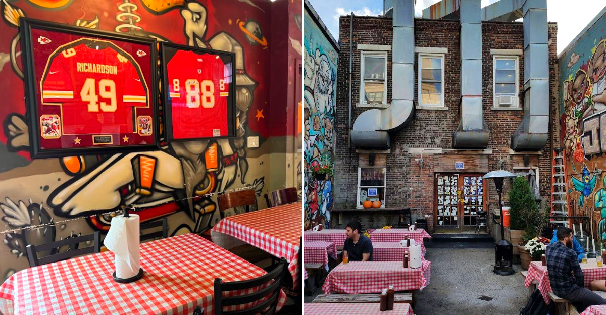 The atmosphere leans hard into Kansas City pride, with Chiefs banners decorating both the indoor and outdoor spaces, making the whole experience feel like a spirited detour through Missouri without ever leaving New York.