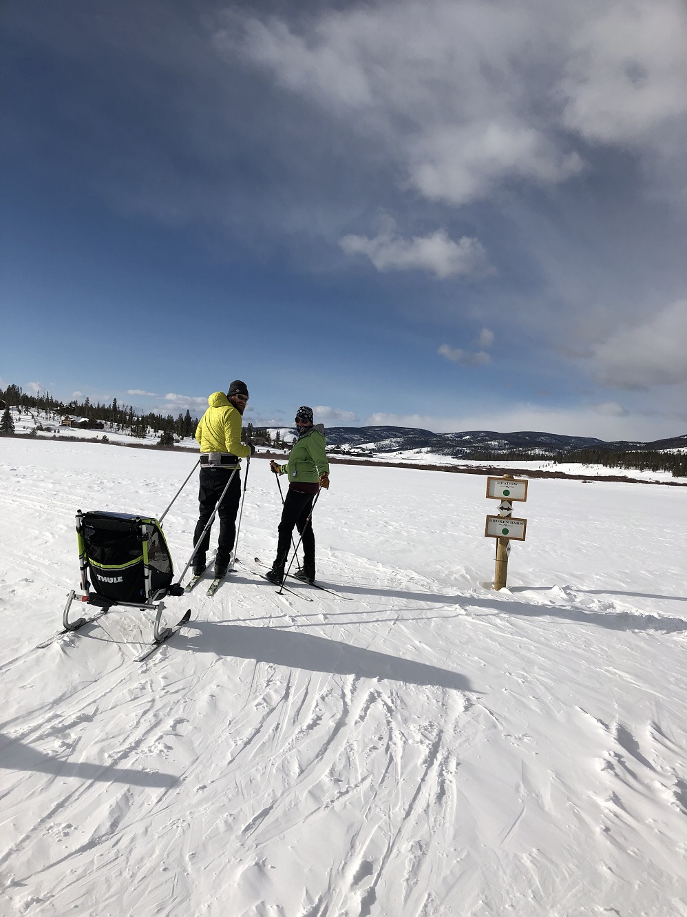 Another plus: babies and toddlers can come along in a special covered multi-sport trailer pulled by mom or dad. “A really good workout,” one dad laughed, his seven-month-old snug and asleep behind him in a multisport sled.